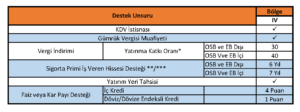 Söz konusu 4. Bölge Destekleri ise şu şekildedir.